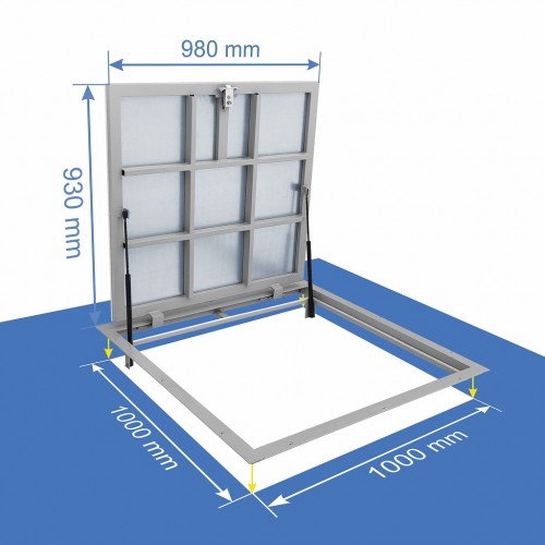 Galvenās īpašības Grīdas Revīzijas lūka zem flīzes 100x100 Alumīnijs