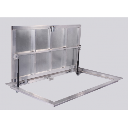 Крышка усилена алюминиевыми ребрами жесткости и оцинкованным стальным листом, а к двери прикреплен лист из гипсокартонного волокна. Допустимая нагрузка на крышку люка до 1000 кг. Крышка люка запирается на замок, по периметру дверцы резиновый уплотнитель. Газовые амортизаторы облегчают открытие люка независимо от веса крышки. Технология изготовления напольного люка надежно гарантирует их прочность и устойчивость к коррозии. Это обеспечивает безопасность технических сетей и безопасность их эксплуатации.